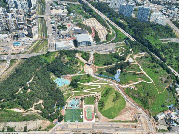 ±âÁ¸ÀÇ µ¿ÃµÀ» Ȱ¿ëÇÑ ³ìÁö°ø°£°ú ģȯ°æ Æ¯È ÈÞ°Ô°ø°£À¸·Î Á¶¼ºÁßÀ̸ç, Àαٿ¡´Â ¸ñ¼º¸®¿Í ´êÀ» ¼ö ÀÖ´Â º¸µµ±³µµ ¼³Ä¡ÇÑ´Ù.