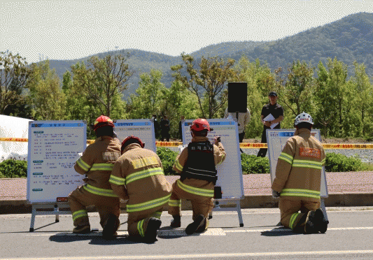 ¼Ò¹æ¼´Â °Ç¹° ÈÀç ¹ß»ý »óȲÀ» °¡Á¤ÇØ ÈÆ·ÃÀ» ÁøÇàÇß´Ù. ÁÖ¿ä ³»¿ëÀº ´Ù¼ö»ç»óÀÚ ÁßÁõµµ ºÐ·ù ¹× À̼Û, 23³â °³Á¤ÆÇ ±ä±Þ±¸Á¶ÅëÁ¦´Ü ¿î¿µ¡¤°¡µ¿, ´ëÇü ÈÀçÁø¾Ð ¹× ÀÎ¸í±¸Á¶, ½Å¼ÓÇÑ ÁöÈÖÅëÁ¦ ¹× ±ä±Þ±¸Á¶ ´ëÀÀü°è °È, ÅëÁ¦´Ü ºÎº° ´ã´ç ÀÓ¹« ¼÷Áö µîÀÌ´Ù.