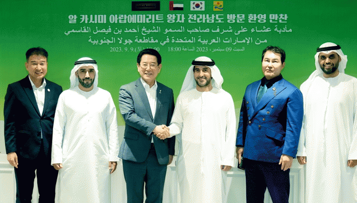 Àü³²µµ´Â ¾Æ¶ø¿¡¹Ì¸®Æ®(UAE)ÀÇ ¼ÎÀÌÅ© ¾ÆÈå¸Þµå ºó ÆÄÀÌ»ì ¾Ë Ä«½Ã¹Ì ¿ÕÀÚ(·Î¾âÆÐ¹Ð¸®¿ÀÇǽº ¼ÒÀ¯ÁÖ) ÀÏÇàÀÌ Áö³ 9ÀÏ Àü³²À» ¹æ¹®ÇØ ÇØ³² ¼Ö¶ó½Ãµµ¿Í °Áø ½º¸¶Æ®ÆÊÀ» µÑ·¯º¸°í, »óÈ£Çù·Â ¹æ¾ÈÀ» ³íÀÇÇß´Ù°í ¹àÇû´Ù.