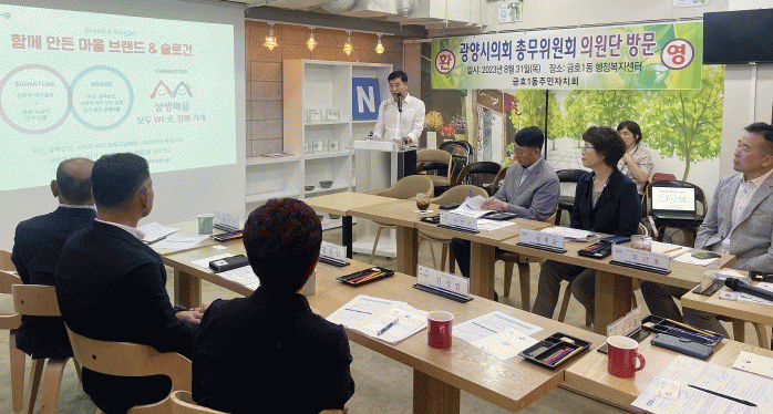 À̳¯ ±ÝÈ£1µ¿ ÁÖ¹ÎÀÚġȸ¿¡¼´Â ÁÖ¹ÎÀÚġȸÀÇ ¿î¿µ¹æ½Ä°ú ¿ªÇÒ, ÁÖ¹ÎÀÚÄ¡À§¿øÈ¸¿Í ÁÖ¹ÎÀÚġȸÀÇ Â÷ÀÌÁ¡¿¡ ´ëÇÑ ¼³¸íÀ» ÅëÇØ ÁÖ¹ÎÀÚġȸ Àüȯ¿¡ µû¸¥ ¹ý·É°ú Á¦µµÀû Áغñ »çÇ×À» Àü´ÞÇß´Ù. ¶Ç ÀÚÄ¡ Ȱµ¿À» ÅëÇØ ¹ß±¼ÇÑ ¸¶À» BIÀÎ »ó»ý¸¶À»¿¡ °üÇÑ ¼³¸í°ú À̸¦ ¹ÙÅÁÀ¸·Î ÇÑ ºê·£µå »ç¾÷ÀÎ »ó»ý¸¶À»±Ý°í ÃßÁø°èȹ¿¡ ´ëÇÑ ¹ßÇ¥¸¦ ÁøÇàÇß´Ù.
