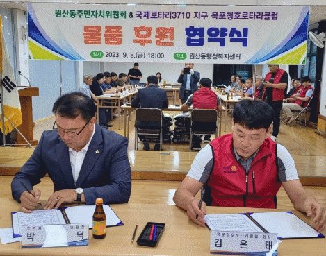 ¶ÇÇÑ À̳¯ ¸ñÆ÷ ûȣ·ÎŸ¸® Ŭ·´ ±èÀºÅ ȸÀå°ú ȸ¿øµéÀº ¿ø»êµ¿ ÁÖ¹ÎÀÚÄ¡À§¿øÈ¸¿¡ ½Ò 20kg, 10°¡¸¶´Ï¸¦ ÈÄ¿øÇϰí, À̹ø Çù¾àÀ» ½ÃÀÛÀ¸·Î º¹Áö»ç°¢Áö´ë ´ë»óÀÚ ¹ß±¼ ¹× ¿¬°è¿¡ Áö¼ÓÀûÀÎ °ü½É°ú ÈÄ¿øÀ» ¾à¼ÓÇß´Ù.