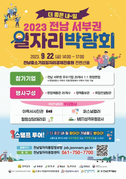 Àü³²Áß¼Ò±â¾÷ÀÏÀÚ¸®°æÁ¦ÁøÈï¿ø°ú Àü³²Àη°³¹ß¿øÀÌ ÁÖ°üÇÏ´Â À̹ø ÀÏÀÚ¸® ¹Ú¶÷ȸ´Â Àü¶ó³²µµ, ¹«¾È±º, ÀåÈﱺ, °Áø±º, ÇØ³²±º, ¿µ±¤±ºÀ» ºñ·ÔÇØ ¸ñÆ÷°í¿ë³ëµ¿Áöû, Çѱ¹»ê¾÷´ÜÁö°ø´Ü´ëºÒÁö»ç µîµµ ÇÔ²² Âü¿©ÇÏ¿© ±â¾÷ü-±¸Á÷ÀÚ °£ Àη¼ö±Þ ºÒÀÏÄ¡ ÇØ¼Ò¿Í Ãë¾÷ ±âȸ È®´ëÀÇ ÀåÀÌ µÉ Àü¸ÁÀÌ´Ù.