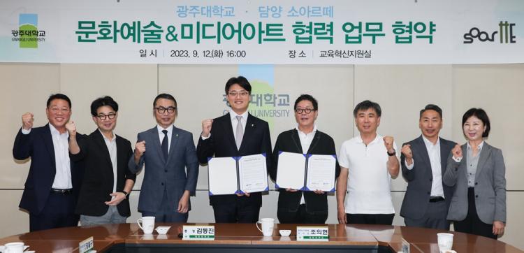 [ÅåÅå´º½º]±¤ÁÖ´ëÇб³(ÃÑÀå ±èµ¿Áø)´Â 9¿ù 12ÀÏ ±³³» ÇàÁ¤°ü 6Ãþ ±³À°Çõ½ÅÁö¿ø½Ç¿¡¼ ´ã¾ç¿¡ ¼ÒÀçÇÑ (Àç)¼Ò¾Æ¸£¶¼(ÀÌ»çÀå Á¶ÀÇÇö)¿Í Áö¿ª ¹®È¿¹¼ú ¹× ¹Ìµð¾î¾ÆÆ® Àη¾缺À» À§ÇÑ ¾÷¹«Çù¾àÀ» ü°áÇß´Ù.