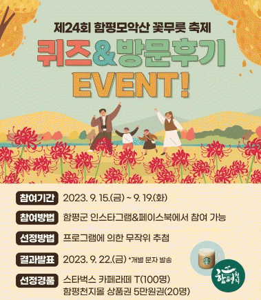 ÄûÁîÀ̺¥Æ®´Â Á¦½ÃµÈ À̹ÌÁö¸¦ º¸°í ÇÔÆòÀÇ ´ëÇ¥ ÃàÁ¦¸íÀ» ¸ÂÈ÷´Â °ÍÀÌ¸ç ¹æ¹® Èıâ À̺¥Æ®´Â ²É¹«¸© ÃàÁ¦¸¦ ¹æ¹®ÇÑ »çÁøÀ» °³ÀÎ SNS¿¡ ¾÷·ÎµåÇϰí ÀÎÁõ»çÁøÀ» Á¦ÃâÇÏ¸é µÈ´Ù.