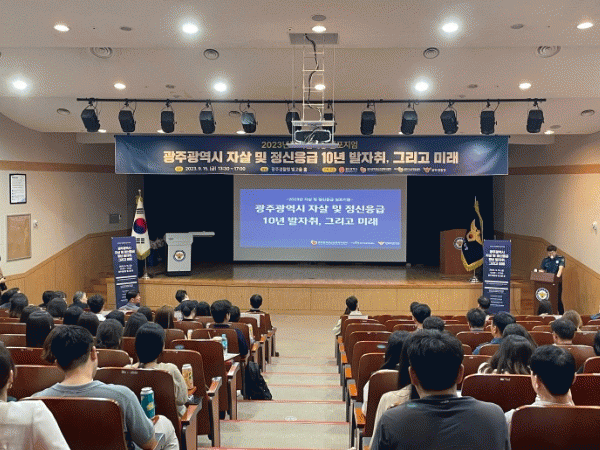 ±è¼º¿Ï Àü³²´ëÇб³ Á¤½Å°Ç°ÀÇÇаú ±³¼ö°¡ ¡®°æÂû°ú ¼Ò¹æ´ë¿øÀ» À§ÇÑ Á¤½ÅÀÀ±Þ ÆÇ´Ü ¹× ´ëÀÀ ÇÁ·Î±×·¥¡¯¿¡ ´ëÇØ ¹ßÇ¥Çß´Ù. À̾î À¯½ÂÇü ±¤ÁÖ±¤¿ª½ÃÁ¤½Å°Ç°º¹Áö¼¾ÅÍÀåÀ» ÁÂÀåÀ¸·Î ¡®24½Ã°£ ÀÚ»ì ¹× Á¤½ÅÀÀ±Þ À§±â´ëÀÀ Àϼ± ÇöÀå Á᫐ ´ÙºÎó ÅëÇÕ ´ëÀÀ, ±× ÇØ´äÀº?¡¯À» ÁÖÁ¦·Î Åä·ÐÀ» ÆîÃÆ´Ù. Åä·Ð¿¡´Â ±¤ÁÖ°æÂûû, ¼Ò¹æ¾ÈÀüº»ºÎ, Á¤½ÅÀÀ±ÞÀÇ·á±â°ü, ±âÃÊÁ¤½Å°Ç°º¹Áö¼¾ÅÍ °ü°èÀÚ°¡ Âü¿©ÇØ ±â°üº° ¿ªÇÒÀ» ÀçÁ¤¸³Çϰí Á¤½Å°úÀû À§±â»óȲÀ¸·ÎºÎÅÍ ¾ÈÀüÇÑ ±¤ÁÖ¸¦ ¸¸µé±â À§ÇØ ³ë·ÂÇϱâ·Î ´ÙÁüÇß´Ù.