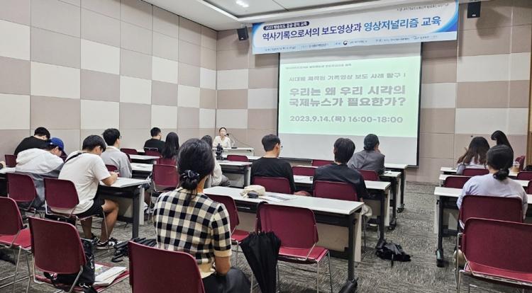 ÇлýµéÀº ƯÈ÷ ¡®ÈùÃ÷ÆäÅÍ ±¹Á¦º¸µµ»ó¡¯ ¼ö»óÀÛ Àü½Ãȸ ¹× Ưº°±³À° ÇÁ·Î±×·¥¿¡ Âü¿©ÇØ ¼ö»óÀÛ ÇØ¼³°ú ÇÔ²² ±è¿µ¹Ì ºÐÀïÀü¹®PD°¡ ¸»ÇÏ´Â ¿ì¸®½Ã°¢ÀÇ ±¹Á¦´º½º ÃëÀç, º¸µµÀÇ Çʿ伺°ú ÀÚ½ÅÀÇ ¿À·£ ±¹Á¦ºÐÀï ÃëÀç °æÇè´ã, ±¹Á¦ºÐÀï Àú³Î¸®½ºÆ®°¡ °®Ãç¾ßÇÒ ´É·Â°ú ¹æ¹ý¿¡ ´ëÇÑ Æ¯°¿¡ Âü¿©Çß´Ù.