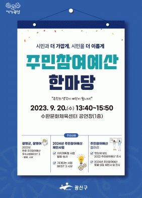 À̹ø Çà»ç¿¡¼´Â 21°³ µ¿ ÁֹΠ´ëÇ¥°¡ Á¦¾È»ç¾÷À» ¹ßÇ¥ÇÏ°í ±¤»ê±¸ ÁÖ¹ÎÂü¿©¿¹»êÀ§¿øÈ¸°¡ ½É»çÇÑ´Ù. À̸¦ ÅëÇØ ¼±Á¤ÇÑ Á¦¾È»ç¾÷Àº ³»³âµµ º»¿¹»ê¿¡ Æí¼ºµÉ ¿¹Á¤ÀÌ´Ù.