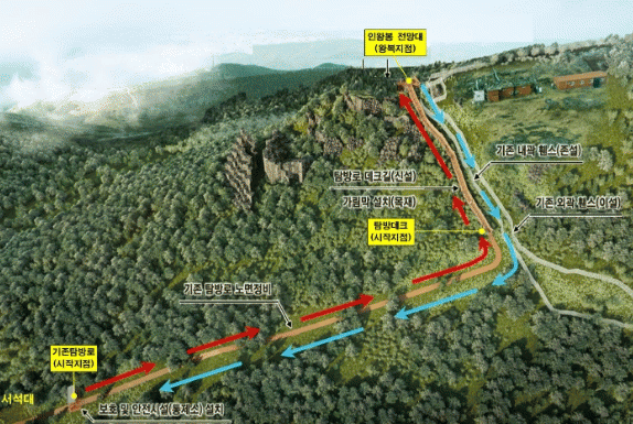 »ó½Ã°³¹æ ÄÚ½º´Â ¼¼®´ë ÁÖ»óÀý¸®¿¡¼ ºÎ´ë ÈĹ® ¿·À» Áö³ª ÀοպÀ Àü¸Á´ë±îÁö °¬´Ù°¡ ´Ù½Ã ³»·Á°¡´Â ¿Õº¹ÄÚ½º·Î ¾à 390mÀ̸ç, ޹æ·Î ÆøÀº 1.8m·Î Ž¹æ°´µéÀÇ ±³ÇàÀÌ °¡´ÉÇϵµ·Ï Çß´Ù.