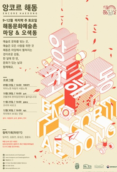 ¿À´Â 23ÀÏ °¡¼ö Çϸ²ÀÇ¡®ÇǾƳë¸Ç Çϸ²ÀÇ »ç¶û³ë·¡¡¯(À̾߱â¼Õ´Ô : ÀÓÀÇÁø)¸¦ ½ÃÀÛÀ¸·Î, 10¿ù 28ÀÏ¿¡´Â ´ã¾çÀ¾¿¡¼ºÎÅÍ ÇØµ¿¹®È¿¹¼úÃ̱îÁö ±æÀ» µû¶ó ³ó¾ÇÀ» ¼±º¸À̴¡®ÀüÅ뿬Èñ ÇѸ¶´ç(¸¸º¹ÀÌ µé¾î°©´Ï´Ù)¡¯À» ÁøÇàÇÑ´Ù.