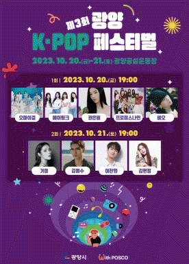 ¿ÃÇØ·Î Á¦3ȸ¸¦ ¸Â´Â ±¤¾ç K-POP Æä½ºÆ¼¹úÀº 10¿ù 20ÀϺÎÅÍ ¿À¸¶À̰É, ¿¡ÀÌÇÎÅ©, ±ÇÀººñ, ÇÁ·Î¹Ì½º³ªÀÎ, ºñ¿À µî ÃÖ° ¶óÀξ÷ÀÇ ¡®K-POP¡¯ °ø¿¬°ú °Å¹Ì, ±è¹ü¼ö, ÀÌÂù¿ø, ±èÇöÁ¤ µî Àα⠰¡¼öµéÀÌ ´ë°Å Ã⵿ÇÏ´Â ¡®7080 & Æ®·Ô¡¯ÀÌ ÀÌÆ²¿¡ °ÉÃÄ Â÷·Ê·Î ¿¸°´Ù.