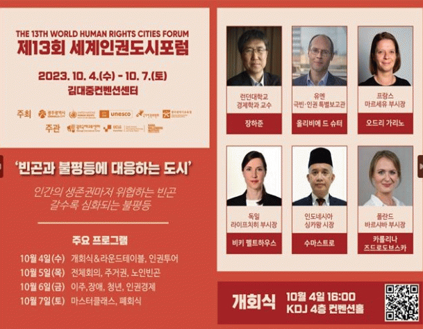 ¿ÃÇØ ÁÖÁ¦´Â ¡®ºó°ï°ú ºÒÆòµî¿¡ ´ëÀÀÇÏ´Â µµ½Ã(Human Rights Cities Responding To Poverty And Inequalities)¡¯ÀÌ´Ù.