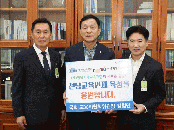 ±èö¹Î À§¿øÀåÀº À̳¯ ±¹È¸ ±³À°À§¿øÀå½Ç¿¡¼ ±è´ëÁß ÀÌ»çÀåÀ» ¸¸³ª ÀåÇбݰú ÇÔ²² ¡°Àü³²¹Ì·¡±³À°Àç´ÜÀÇ »õ·Î¿î Ãâ¹ß°ú Àü³²±³À°ÀÎÀç À°¼ºÀ» ÀÀ¿øÇÑ´Ù.¡±´Â ÀÀ¿ø ¸Þ½ÃÁö¸¦ Àü´ÞÇß´Ù.
