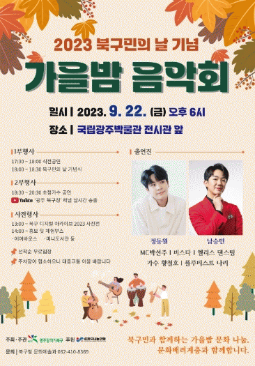 ÀÌ¾î ¿¸®´Â ºÏ±¸¹Î °¡À»¹ã À½¾Çȸ¿¡¼´Â ÁֹεéÀÇ ÈïÀ» µ¸¿ì°í °¡À»¹ã ³¶¸¸À» ¸¸³£ÇÒ ¼ö ÀÖ´Â Á¤µ¿¿ø, ³²½Â¹Î µî ÃÊû °¡¼öÀÇ ÃàÇÏ °ø¿¬ÀÌ ÆîÃÄÁø´Ù.