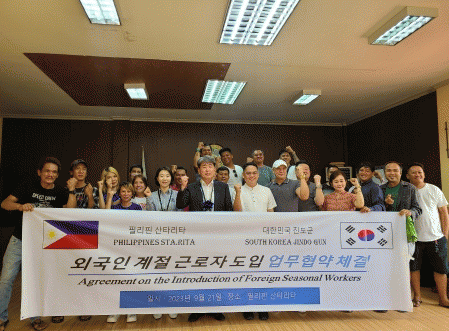 ÇÑÆí Áøµµ±ºÀº ¹Î¼±8±â ±èÈñ¼ö ±º¼ö °ø¾à»çÇ×ÀÎ ¿Ü±¹ÀÎ °èÀý±Ù·ÎÀÚ ¼÷¼Ò Áö¿ø »ç¾÷À» ÅëÇØ ¿Ü±¹ÀÎ °èÀý±Ù·ÎÀÚ¸¦ °í¿ëÇÏ´Â ³ó¾î°¡ÀÇ ºÎ´ã °æ°¨°ú ±Ù·ÎÀÚÀÇ ÁÖ°Åȯ°æ °³¼±À» Áö¿øÇÏ°í °èÀý±Ù·ÎÀÚµéÀÌ Áøµµ±º¿¡ Á¤ÂøÇÒ ¼ö ÀÖµµ·Ï ´Ù¾çÇÑ Áö¿øÀ» Çϰí ÀÖ´Ù.