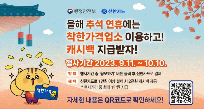 À̹ø Çà»ç´Â ÇàÁ¤¾ÈÀüºÎ¿Í ½ÅÇÑÄ«µåÀÇ Çù¾÷À¸·Î Ãß¼®À» ¸Â¾Æ ¹°°¡¾ÈÁ¤°ú Áö¿ª°æÁ¦ »ó»ýÀ» À§ÇØ ¸¶·ÃµÆ´Ù.