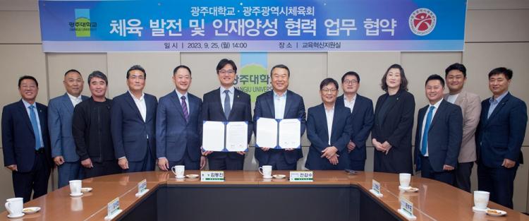 [ÅåÅå´º½º]±¤ÁÖ´ëÇб³(ÃÑÀå ±èµ¿Áø)´Â 9¿ù 25ÀÏ ¿ÀÈÄ ±³³» ÇàÁ¤°ü 6Ãþ ±³À°Çõ½ÅÁö¿ø½Ç¿¡¼ ±¤ÁÖ±¤¿ª½ÃüÀ°È¸(ȸÀå Àü°©¼ö)¿Í Áö¿ª üÀ°¹ßÀü ¹× üÀ°ºÐ¾ß ¿ì¼ö ÀÎÀç¾ç¼ºÀ» À§ÇÑ ¾÷¹«Çù¾àÀ» ¸Î¾ú´Ù.