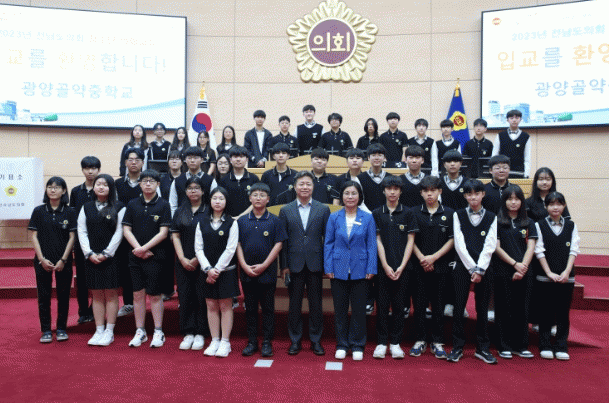 À̳¯ ÀÇȸ±³½Ç¿¡´Â ±¤¾ç½Ã ¼ÒÀç ±¤¾ç°ñ¾àÁßÇб³ Çлý 42¸íÀÌ Âü¿©ÇÑ °¡¿îµ¥ ¹Ú°æ¹Ì µµÀÇ¿øÀÌ Á÷Á¢ ÇлýµéÀ» ¸ÂÀÌÇÏ°í °Ý·ÁÇßÀ¸¸ç, ÀÇȸ±³½Ç Âü¿© ÇлýµéÀº 1ÀÏ µµÀÇ¿øÀÇ ¿ªÇÒÀ» Á÷Á¢ ¸Ã¾Æ ÀÔ±³½ÄÀ» ½ÃÀÛÀ¸·Î ÀÇ¿ø¼±¼, ÀÇÀå¼±°Å, Á¶·Ê¾È ó¸®, 3ºÐ ÀÚÀ¯¹ß¾ð µîÀÇ º»È¸ÀÇ ÀÇ»çÁøÇà ¼ø¼¿Í °°Àº µ¿ÀÏÇÑ ¹æ½ÄÀ¸·Î ¸ðÀÇÀÇȸ¸¦ üÇèÇß´Ù.