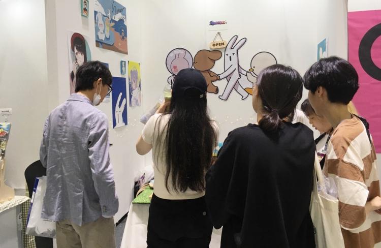 ÇлýµéÀº Á÷Á¢ ±âȹÇϰí Á¦ÀÛÇÑ ¸¸È ¹× ¾Ö´Ï¸ÞÀÌ¼Ç Ä³¸¯Å͵éÀ» ÃâÇ°ÇØ ¹Ú¶÷ȸ¿¡ Âü¼®ÇÏ´Â °ü¶÷°´µéÀÇ ½Ã¼±À» ²ø¾úÀ¸¸ç, ºÎ½º¸¦ ¿î¿µÇÏ´Â ÇлýµéÀº °ü¶÷°´¿¡°Ô Áø¿µÈ ÀÛǰ¿¡ ´ëÇÑ »ó¼¼ÇÑ ¼³¸íÀ» Á¦°øÇß°í, °ü¶÷°´ÀÇ Áú¹®¿¡ ¼º½É¼ºÀDz¯ ´äº¯Çß´Ù.
