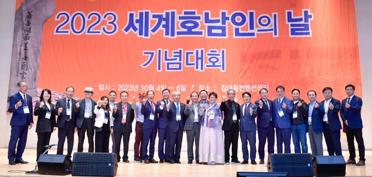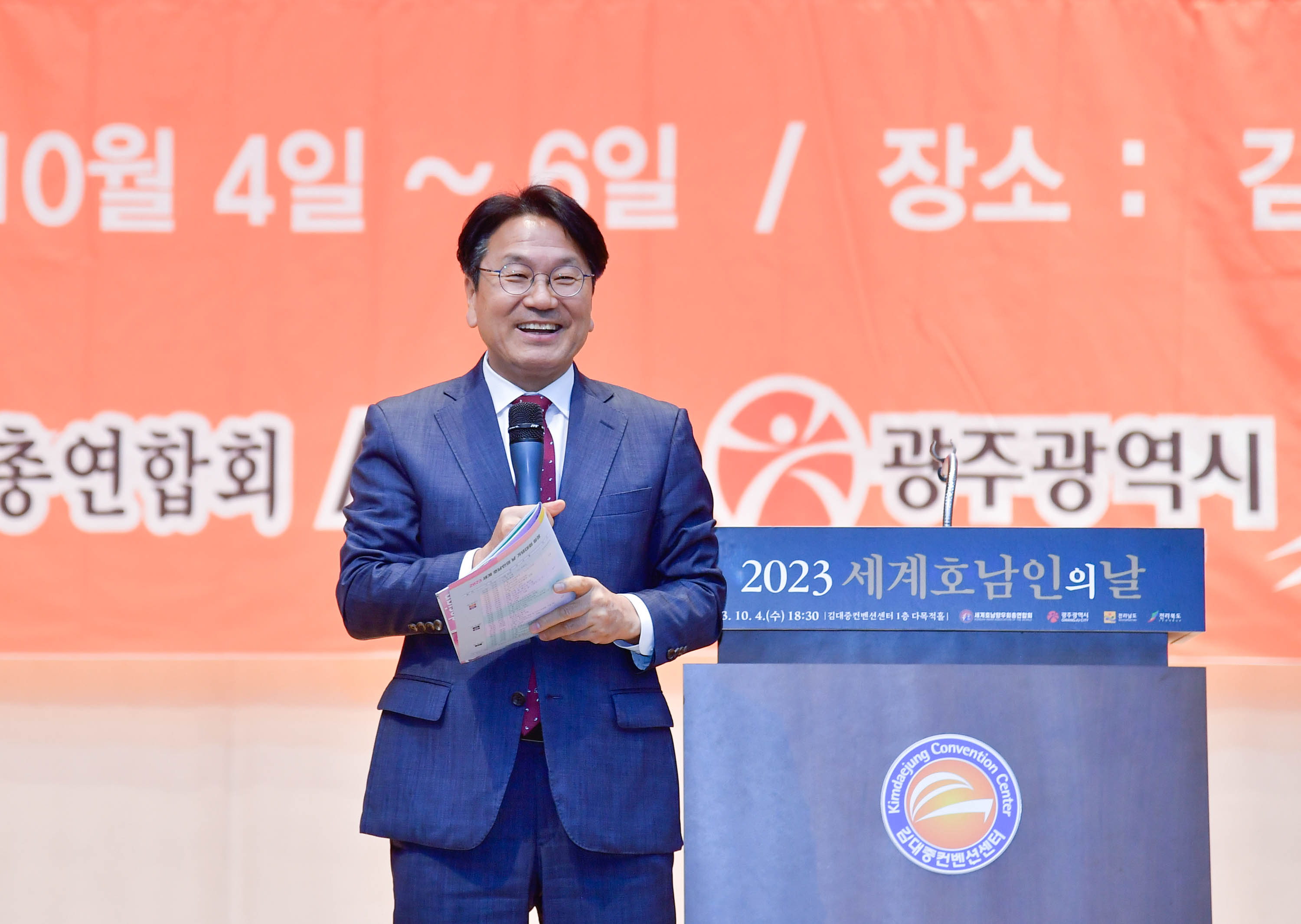 ±¤ÁÖ±¤¿ª½Ã´Â 4ÀÏ ¿ÀÈÄ ±è´ëÁßÄÁº¥¼Ç¼¾ÅÍ¿¡¼ ¿ÃÇØ·Î 10ȸ°¸¦ ¸ÂÀº ¡®2023 ¼¼°èÈ£³²ÀÎÀÇ ³¯ ±â³ä½Ä¡¯À» °³ÃÖÇß´Ù. °±âÁ¤ ½ÃÀåÀ» ºñ·ÔÇØ ¸íâȯ Àü³²µµ ÇàÁ¤ºÎÁö»ç, ±èÁ¾ÈÆ ÀüºÏµµ °æÁ¦ºÎÁö»ç, ¼¼°èÈ£³²Çâ¿ìȸ¿ø 350¿©¸í µîÀÌ Âü¼®Çß´Ù.