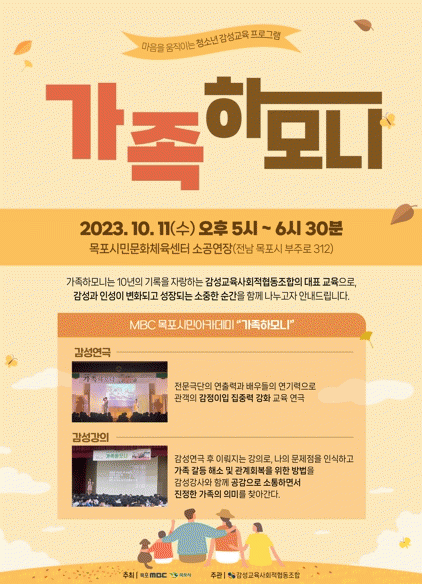 ¸ñÆ÷½Ã °ü°èÀÚ´Â ¡°À̹ø ÇÁ·Î±×·¥À» ÅëÇØ ¾òÀº °¡Á·¿¡ ´ëÇÑ ¼ÒÁßÇÑ ¸¶À½À» °¡Áö°í ¿ì¸® ¸ðµÎ°¡ µû¶æÇÑ °øµ¿Ã¼ »çȸ·Î À̾À½À» Èñ¸ÁÇÑ´Ù¡±¸ç ¡°°¨¼º±³À°¿¡ °ü½ÉÀÌ ÀÖ´Â ½Ã¹Î ¿©·¯ºÐ°ú ƯÈ÷, Çкθð¿Í Àڳడ µ¿¹Ý Âü¿©ÇØ ÂüµÈ Àμº±³À°ÀÇ ±âȸ¸¦ °¡Áú ¼ö ÀÖµµ·Ï ¸¹Àº °ü½É°ú Âü¿©¸¦ ºÎʵ台´Ù¡±°í ¸»Çß´Ù.