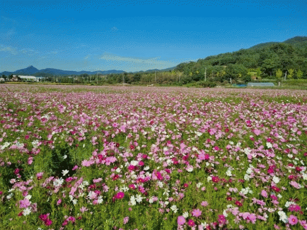 ȼø±º ³ó¾÷±â¼ú¼¾ÅÍ´Â ³óÃÌÀÇ °æ°üÀ» ¾Æ¸§´ä°Ô À¯ÁöÇϱâ À§ÇÏ¿© À¯ÈÞÁö¸¦ Á¤ºñÇϰí ÄÚ½º¸ð½º¸¦ ÆÄÁ¾ÇØ ²É´ÜÁö¸¦ Á¶¼ºÇß´Ù. ²É´ÜÁö°¡ Á¶¼ºµÈ Áö¿ªÀº Ãá¾ç¸é ¼®Á¤¸® 112¹øÁö ÀÏ´ë(0.5ha), À̾ç¸é ¿À·ù¸® 571¹øÁö ÀÏ´ë(2.7ha)·Î ÃÑ 3.2ha¿¡ ´ÞÇÏ´Â ¸éÀû¿¡ ÄÚ½º¸ð½º°¡ ¹°°áÄ¡µí Àå°üÀ» ÀÌ·ç°í ÀÖ´Ù.