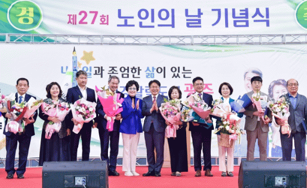 ¡®³ëÀÎÀÇ ³¯¡¯À» ¸Â¾Æ Á¤ºÎ´Â 100¼¼¸¦ ¸ÂÀº ¾î¸£½Å¿¡°Ô °Ç°¡¤Àå¼ö¸¦ ±â¿øÇÏ´Â Àå¼öÁöÆÎÀÌ Ã»·ÁÀåÀ» ÁõÁ¤Çϴµ¥, ¿ÃÇØ ±¤Áֽÿ¡¼´Â 59¸íÀÇ ¾î¸£½ÅÀÌ Ã»·ÁÀå ¹Þ¾Ò´Ù.