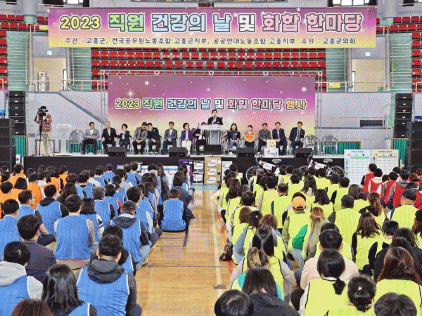 °íÈﱺ, Àü±¹°ø¹«¿ø³ëµ¿Á¶ÇÕ °íÈﱺÁöºÎ, °ø°ø¿¬´ë³ëµ¿Á¶ÇÕ °íÈïÁöºÎ°¡ °øµ¿À¸·Î °³ÃÖÇÏ°í °íÈﱺÀÇȸ¿¡¼ ÈÄ¿øÇÑ À̳¯ Çà»ç´Â Á÷¿øµéÀÇ Ä£¸ñ°ú ÈÇÕÀ» ´ÙÁö´Â µ¿½Ã¿¡ Ȱ±âÂù Á÷Àå ºÐÀ§±â Á¶¼ºÀ» À§ÇØ ¸¶·ÃµÆÀ¸¸ç, ¹Î¿øÀÎÀÇ ºÒÆíÀ» ÃÖ¼ÒÈÇϱâ À§ÇØ ºÎ¼º° ÇʼöÀοøÀ» Á¦¿ÜÇÑ Àü Á÷¿øÀÌ Âü¼®ÇØ Áñ°Å¿î ½Ã°£À» °¡Á³´Ù.