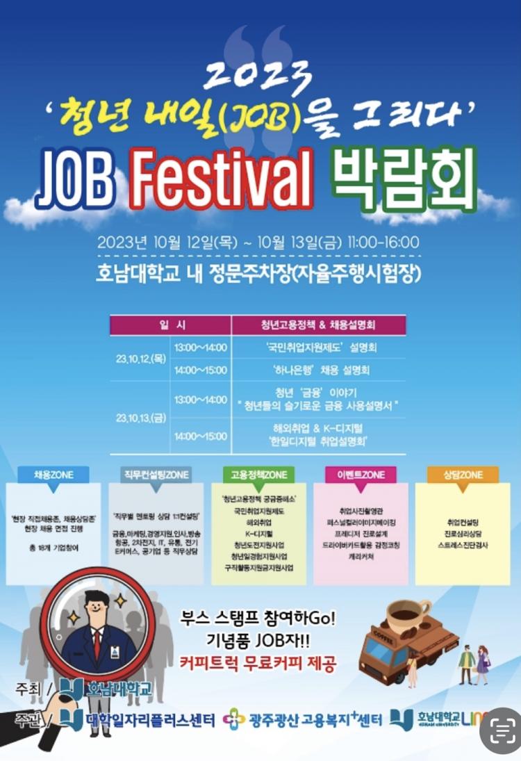û³âÃë¾÷ÀÇ µµ¾àÀ» ²Þ²Ù¸ç È£³²´ëÇб³ LINC3.0»ç¾÷´Ü, ±¤ÁÖ±¤»ê°í¿ëº¹ÁöÇ÷¯½º¼¾ÅÍ¿Í °øµ¿ÁÖ°üÀ¸·Î °³ÃÖÇÏ´Â À̹ø Job Festival ¹Ú¶÷ȸ Çà»ç¿¡¼´Â Çлýµé°ú Áö¿ªÃ»³âµé¿¡°Ô Ãë¾÷Á¤º¸¸¦ Á¦°øÇϰí, ¿ì¼ö±â¾÷°ú ÁÁÀº ÀÎÀç¿Í ¼ÒÅëÇÏ´Â ¸¸³²ÀÇ ÀåÀ» ¸¶·ÃÇÑ´Ù.