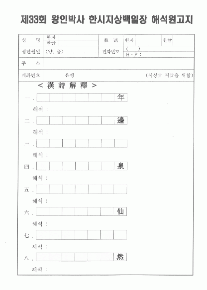 ¹éÀÏÀåÀÇ ½ÃÁ¦´Â èÝÙÙóÜËïß²ä¨×¿ñÎÒ´êóÊï(¿Õ¹¦Ã¢°Ç»ï½ÊÀ°ÁÖ³âÀ¯°¨), ¾Ð¿îÀº Ò´(³â)¡¤Ü«(º¯)¡¤ô»(õ)¡¤à¹(¼±)¡¤æÔ(¿¬), Çü½ÄÀº Ä¥¾ðÀ²½Ã´Ù.