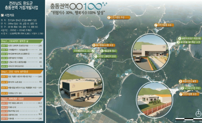¼¼ºÎ »ç¾÷ ³»¿ëÀ¸·Î´Â ±Í¾î üÇè ÇϿ콺, ûÀå³â ±³·ù ¼¾ÅÍ, À°¾Æ µ¹º½ º¹Áöȸ°ü, °æ·Î´çÀ» Á¶¼ºÇÏ°í ¹æÆÄÁ¦ ¿¬Àå µî ¾îÇ׽ü³ °³¼±, Â÷·® ÅëÇà·Î °³¼± »ç¾÷ µîÀ» ÃßÁøÇÑ´Ù.
