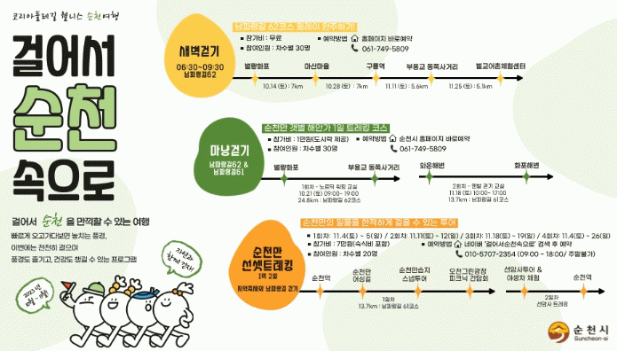 ¼øÃµ½Ã´Â 14ÀϺÎÅÍ 11¿ù±îÁö °É¾î¼ ¼øÃµ ¼ÓÀ¸·Î ³²ÆÄ¶û±æ °¡À» ¿©Çà °È±â ÇÁ·Î±×·¥À» ÁøÇàÇÑ´Ù°í ¹àÇû´Ù.