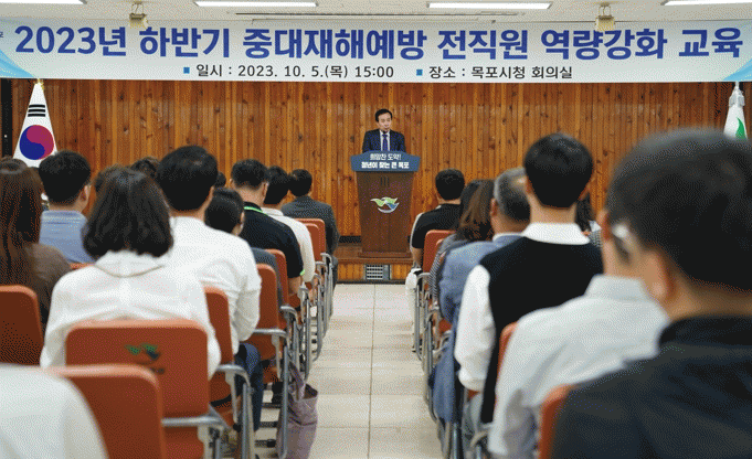 5ÀÏÀº ¸ñÆ÷½Ãû ȸÀǽǿ¡¼ ¸ñÆ÷½Ã ÀüÁ÷¿øÀ» ´ë»óÀ¸·Î ¹ý¹«¹ýÀÎ À²ÃÌ Áß´ëÀçÇØ¼¾ÅÍ ±è°ü¿ì ¼ö¼®Àü¹®À§¿øÀ» ÃʺùÇØ ¡ãÁß´ëÀçÇØÃ³¹ú¹ý °ü·Ã »ç¹ý ó¸®ÇöȲ°ú ÃÖ±Ù µ¿Çâ ¡ãÁß´ëÀçÇØÃ³¹ú¹ýÀÇ ÁÖ¿ä ³»¿ë ¡ãü°èÀûÀÎ ¾ÈÀü°ü¸® ¹æ¾È ¾È³» µî ÀüÁ÷¿ø ¾ÈÀüÀǽÄÀ» °ÈÇÏ´Â ±³À°À» ½Ç½ÃÇß´Ù.