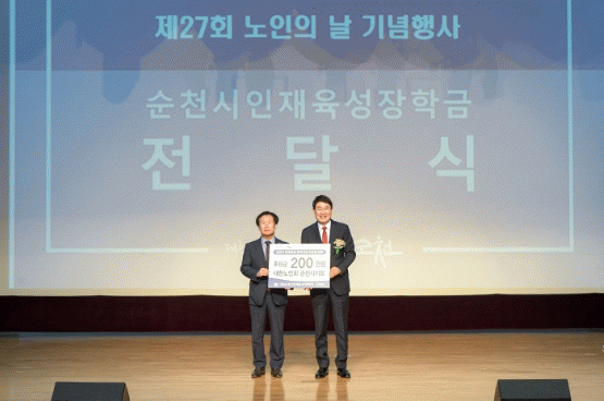 ¶ÇÇÑ, ¼øÃµ½Ã³ëÀÎȸ(ȸÀå ±è¿µ¼ö)¿¡¼ ¼øÃµ½Ã ¹Ì·¡ÀÎÀç À°¼ºÀ» À§ÇÑ ÀåÇÐ±Ý 200¸¸ ¿øÀ» ¼øÃµ½ÃÀÎÀçÀ°¼ºÀåÇÐȸ(ÀÌ»çÀå ³ë°ü±Ô)¿¡ Àü´ÞÇÏ¸ç ¹Ì·¡ÀÎÀç ¹ß±¼¿¡ ´ëÇÑ Àû±ØÀûÀÎ °ü½É°ú Á¤¼ºÀ» º¸¿©ÁÖ¾ú´Ù.