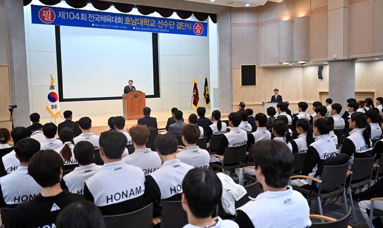 [ÅåÅå´º½º]¿À´Â 13ÀϺÎÅÍ °³ÃֵǴ Á¦104ȸ Àü±¹Ã¼À°´ëȸ¿¡ ±¤ÁÖ±¤¿ª½Ã ´ëÇ¥·Î ÃâÀüÇϴ ȣ³²´ëÇб³ ¼±¼ö´ÜÀÌ 10¿ù 10ÀÏ ¿ÀÈÄ 2½Ã ±³³» Áß¾Óµµ¼°ü ±¹Á¦È¸Àǽǿ¡¼ °á´Ü½ÄÀ» °®°í ¼±ÀüÀ» ´ÙÁüÇß´Ù.