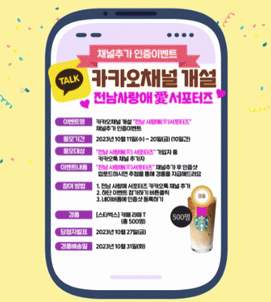 ƯÈ÷ ¿À´Â 20ÀϱîÁö 10Àϰ£ ä³Î °³¼³ À̺¥Æ®¸¦ ÁøÇàÇÑ´Ù. Àü³² »ç¶û¾Ö ¼Æ÷ÅÍÁî ä³ÎÀ» ±¸µ¶ ½ÅûÇϸé Áï½Ã ÀÀ¸ðÇÒ ¼ö ÀÖ´Ù. ÀÀ¸ðÀÚ Áß Ãß÷À» ÅëÇØ 500¸íÀ» ¼±Á¤ÇØ 5õ ¿ø »ó´çÀÇ ±âÇÁƼÄÜÀ» ÁõÁ¤ÇÑ´Ù.