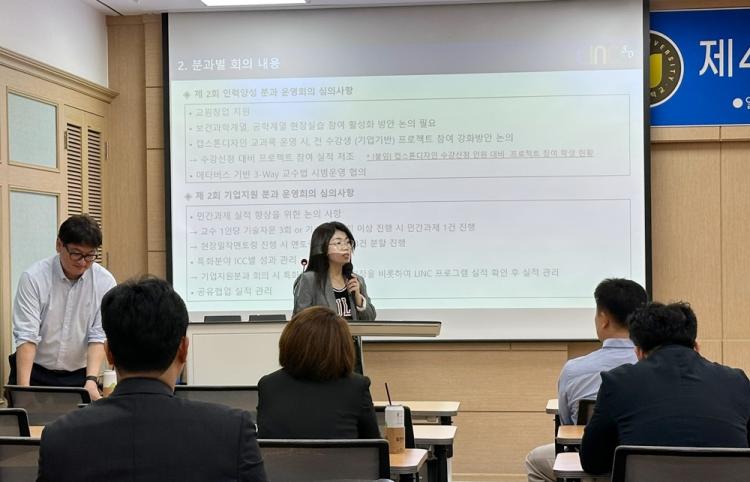 [ÅåÅå´º½º]È£³²´ëÇб³ LINC 3.0»ç¾÷´Ü(´ÜÀå ¾ç½ÂÇÐ)Àº 10¿ù 10ÀÏ È£³²´ëÇб³ »óÁö°ü(3È£°ü) 1Ãþ job-section½Ç¿¡¼ Á¦ 4ȸ »êÇÐÇù·ÂÁßÁ¡±³¼ö°£´ãȸ¸¦ ÁøÇàÇß´Ù.
