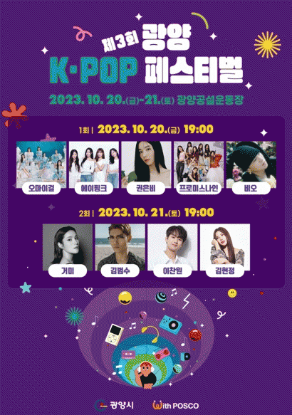 ÇÑÆí, ¿ÃÇØ·Î Á¦3ȸ¸¦ ¸Â´Â ±¤¾ç K-POP Æä½ºÆ¼¹úÀº ¿À¸¶À̰É, ¿¡ÀÌÇÎÅ©, ±ÇÀººñ, ÇÁ·Î¹Ì½º³ªÀÎ, ºñ¿À µî ÃÖ° ¶óÀξ÷ÀÇ ¡®K-POP¡¯ °ø¿¬°ú °Å¹Ì, ±è¹ü¼ö, ÀÌÂù¿ø, ±èÇöÁ¤ µîÀÌ Ã⿬ÇÏ´Â ¡®7080 ¡¤ Æ®·Ô¡¯ °ø¿¬ÀÌ ¿À´Â 20Àϰú 21ÀÏ ¿¬ÀÌ¾î ÆîÃÄÁø´Ù.