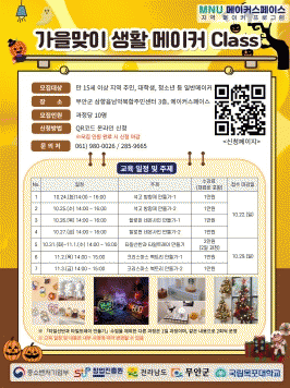 °¡À»¸ÂÀÌ »ýȰ¸ÞÀÌÄ¿ Ŭ·¡½º´Â 10¿ù 24ÀϺÎÅÍ 2ÁÖ°£ ¼®°í¹æÇâÁ¦ ¸¸µé±â, ÇÛ·¯À© ³×¿Â»çÀÎ ¸¸µé±â, ŸÀϼ±¹Ý°ú ŸÀÏÆ®·¹ÀÌ ¸¸µé±â, Å©¸®½º¸¶½º º®Æ®¸® ¸¸µé±â °úÁ¤À¸·Î ¿î¿µÇÒ °èȹÀ̸ç, ÇöÀç ¼ö°»ýÀ» ¸ðÁý ÁßÀÌ´Ù.