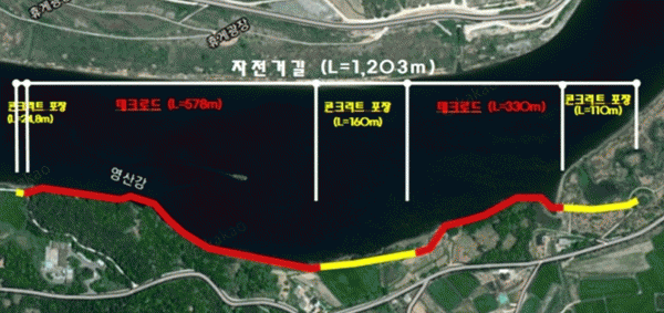 ¸¸ºÀõ ¿µ»ê° ÇÕ·ùÁöÁ¡¿¡¼ ¾Ó¾Ï¹ÙÀ§ ÀÏ¿ø±îÁö 1.2km±¸°£ ÀÚÀü°Å µ¥Å©±æ, ÀÚÀü°Å ½°ÅÍ µîÀÌ Á¶¼ºµÈ´Ù. ÇöÀç °ø»ç´Â ÇöÀç ¾à 30%ÀÇ °øÁ¤·üÀ» º¸À̰í ÀÖ´Ù.