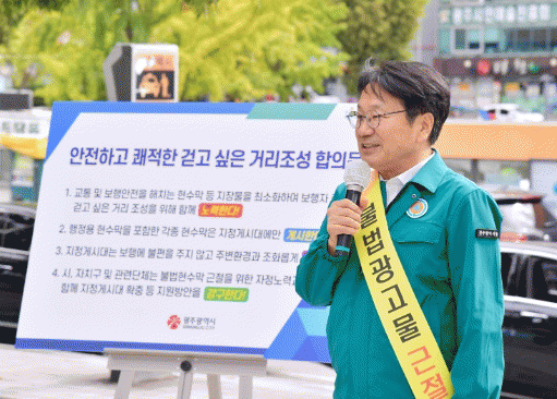 °±âÁ¤ ±¤ÁÖ½ÃÀåÀº ¡°°È°í ½ÍÀº ±¤ÁÖ¸¦ À§ÇØ Å« °á´ÜÀ» ÇØÁֽб¤ÁÖ½ÃÀÇȸ¿Í ´ëÇÑÁÖÅðǼ³Çùȸ, ¿Á¿Ü±¤°íÇùȸ¿¡ Áø½ÉÀ¸·Î °¨»çµå¸°´Ù¡±¸ç ¡°ºÒ¹ýÇö¼ö¸·Àº ½Ã¹ÎÀÇ ¾ÈÀüÀ» À§ÇùÇÏ°í µµ½ÉÀ» ȥŹÇÏ°Ô ¸¸µç´Ù. °È°í ½Í°í ±ú²ýÇÑ ±¤ÁÖ¸¦ ¸¸µé°íÀÚ ÇÏ´Â °á½ÉµéÀÌ ¸ð¿© ÀÌ ÀÚ¸®°¡ °¡´ÉÇß´Ù. ºÒ¹ýÇö¼ö¸· ±ÙÀý¿¡ Àúµµ ÃÖ¼±À» ´ÙÇϰڴ١±°í ¹àÇû´Ù.