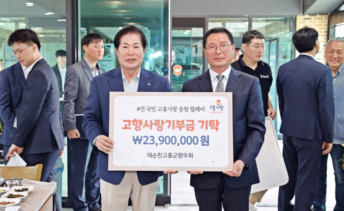 ±º¿¡ µû¸£¸é Àç¼øÃµ°íÈﱺÇâ¿ìȸ´Â Áö³ 14ÀÏ °íÇâ¹æ¹® Çà»ç ½Ã °íÇâ ¹ßÀüÀ» ÀÀ¿øÇϴ ȸ¿øµéÀÇ ¶æÀ» ¸ð¾Æ °íÇâ»ç¶û±âºÎ±Ý 2õ3¹é9½Ê¸¸ ¿øÀ» °íÈﱺ¿¡ Àü´ÞÇß´Ù.