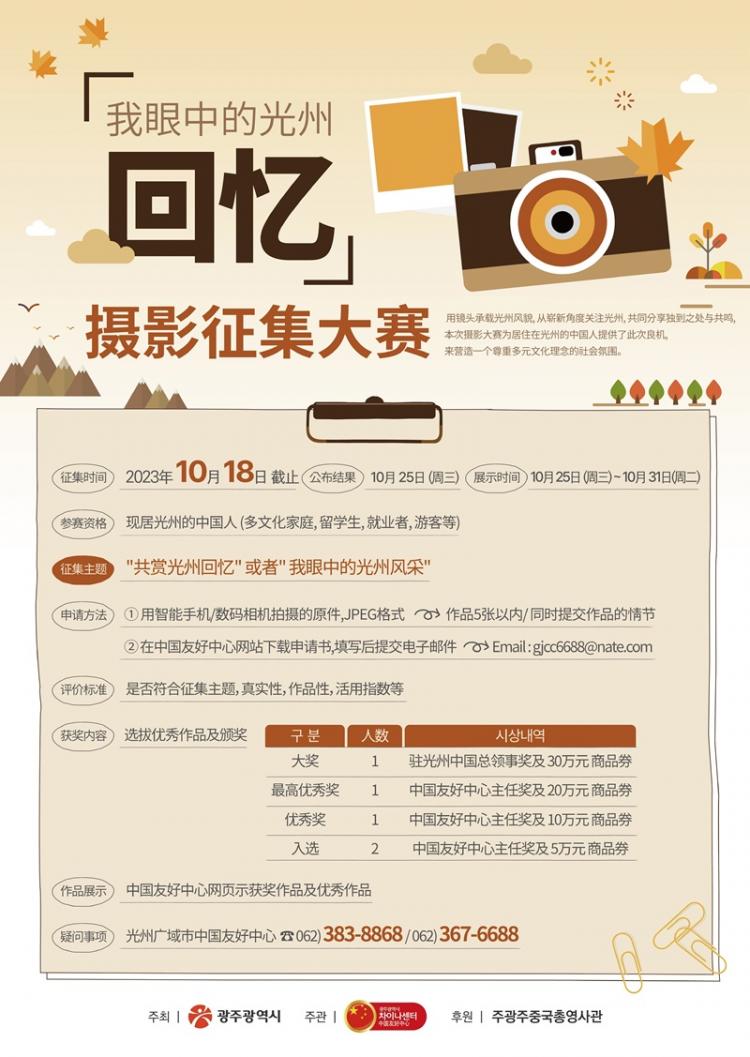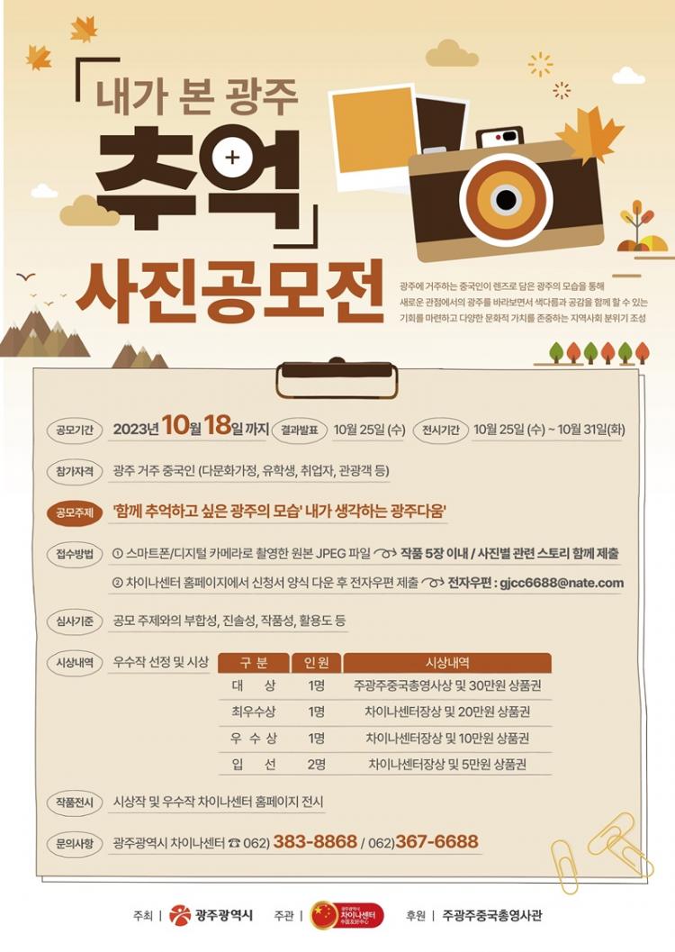 [ÅåÅå´º½º]±¤ÁÖ±¤¿ª½Ã(½ÃÀå °±âÁ¤)°¡ ÁÖÃÖÇÏ°í ±¤ÁÖ±¤¿ª½Ã Â÷À̳ª¼¾ÅÍ(¼¾ÅÍÀå Á¶°æ¿Ï È£³²´ë ±³¼ö)°¡ ÁÖ°üÇÏ´Â ¡®³»°¡ º» ±¤ÁÖ-Ãß¾ï »çÁø°ø¸ðÀü¡¯ÀÌ ¡®2023 ±¤ÁÖ±¤¿ª½Ã Áß±¹¹®ÈÁÖ°£(10¿ù 25ÀÏ~10¿ù 31ÀÏ)¡¯ ±â°£ µ¿¾È °³ÃֵȴÙ.