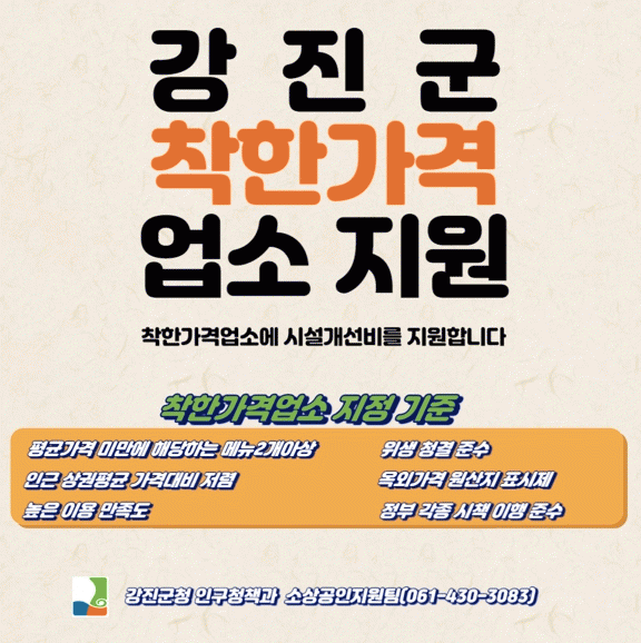 ÂøÇѰ¡°Ý¾÷¼Ò ÁöÁ¤ ±âÁØÀº °Áø±º ¼ÒÀç ¿Ü½Ä¾÷, ÀÌ¡¤¹Ì¿ë¾÷, ¼¼Å¹¾÷ µî ¼ºñ½º ¾÷Á¾ °¡¿îµ¥ ¡ãÆò±Õ °¡°Ý ¹Ì¸¸¿¡ ÇØ´çÇÏ´Â ¸Þ´º 2°³ ÀÌ»ó ¡ãÀα٠»ó±Ç Æò±Õ °¡°Ý ´ëºñ Àú·Å ¡ã³ôÀº ÀÌ¿ë ¸¸Á·µµ ¡ãÀ§»ý¡¤Ã»°á Áؼö ¡ã¿Á¿Ü°¡°Ý¡¤¿ø»êÁö Ç¥½ÃÁ¦ µî Áß¾Ó ¹× ÁöÀÚü °¢Á¾ ½ÃÃ¥ ÀÌÇà µîÀ» ÁؼöÇÑ ¾÷ü °¡¿îµ¥ ¼±Á¤µÈ´Ù.