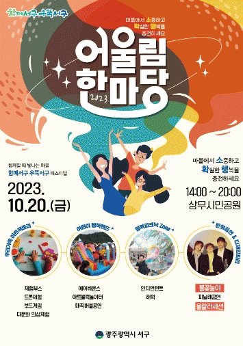1ºÎ¿¡¼´Â Ŭ·¡½Ä ÇÁ·»Áî ¾î¸°ÀÌÇÕâ´ÜÀÇ ¡®10¿ùÀÇ ¾î´À ¸ÚÁø ³¯¿¡¡¯¿Í ¡®¹®¾îÀÇ ²Þ¡¯ °ø¿¬, Ä£Àýµµ½Ã ¼±¸ ¼±Æ÷½Ä, À¯°øÀÚ Ç¥Ã¢ µîÀÌ À̾îÁø´Ù. 2ºÎ¿¡¼´Â °ÅÁ¡µ¿-¿¬°èµ¿ÀÌ ±Ç¿ªº° ÆÀÀ» ÀÌ·ç°í ÁֹεéÀÌ Âü¿©ÇÏ´Â ¸í¶û¿îµ¿È¸¿Í 18°³ µ¿ ÁÖ¹ÎÀÚÄ¡(À§¿ø)ȸ°¡ Á÷Á¢ Á¦ÀÛÇÑ ¸¶À»È°µ¿ ¿µ»ó ÄÜÅ×½ºÆ® ½Ã»ó½ÄÀÌ ¿¸°´Ù. ¶Ç 3ºÎ¿¡¼´Â ¿ï¶ö¶ó¼¼¼Ç ÃÊû°ø¿¬, ¹êµå?ºñº¸ÀÌ?µðÁ¦Àׯį¼ µî ´Ù¾çÇÑ °ø¿¬, È·ÁÇÑ ºÒ²É³îÀ̰¡ ÆîÃÄÁø´Ù.