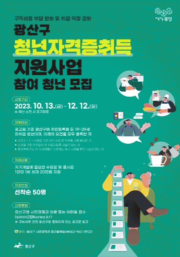 ±¤»ê±¸´Â 12¿ù 12ÀϱîÁö »ç¾÷¿¡ Âü¿©ÇÒ Ã»³âÀ» ¸ðÁýÇÑ´Ù. ´ë»óÀº °ø°íÀÏ(10¿ù13ÀÏ) ±âÁØ ±¤»ê±¸¿¡ Áֹεî·ÏÀ» µÐ 19¼¼~39¼¼ ¹ÌÃë¾÷ û³â 50¸íÀÌ´Ù.