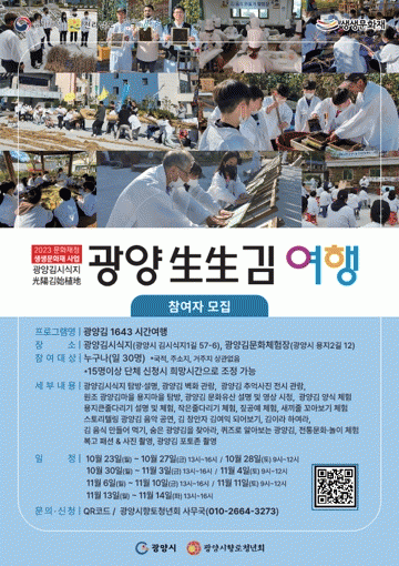 ¡®±¤¾ç±è 1643 ½Ã°£¿©Ç࡯Àº ±¤¾ç½ÃÇâÅäû³âȸ°¡ ÁÖ°üÇÏ´Â 2023³âµµ ¹®ÈÀçû °ø¸ð»ç¾÷ÀÎ »ý»ý¹®ÈÀ硺±¤¾ç ßæßæ ±è ¿©Çà¡»ÀÇ ´ëÇ¥ »ç¾÷ÀÌ´Ù.