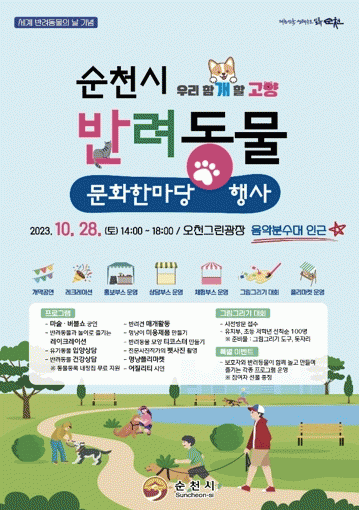 ¾ËÂù Çà»ç¸¦ À§ÇØ °³¸·½Ä µî ÀÇÀüÇà»ç¸¦ »ý·«ÇÏ°í ¸¶¼ú°ø¿¬, ¹öºí¼î¸¦ ½ÃÀÛÀ¸·Î »ç¶÷°ú ¹Ý·Áµ¿¹°ÀÌ ÇÔ²² Áñ±â´Â ·¹Å©·¹ÀÌ¼Ç È°µ¿, ¾îÁú¸®Æ¼ ½Ã¿¬, À¯±âµ¿¹° ÀÔ¾ç»ó´ã, ¹Ý·Áµ¿¹° ¹«·á °Ç°°ËÁø, ¹Ý·Á°ß Çൿ±³Á¤, ¸Û³ÉÀÌ ¹Ì¿ëÁ¦Ç° ¸¸µé±â, Æê»çÁø ÃÔ¿µ µî ´Ùä·Î¿î üÇèÇà»ç°¡ ÁøÇàµÉ ¿¹Á¤ÀÌ´Ù.