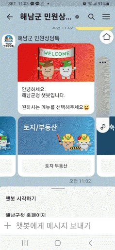 Á¢¼ÓÇÏ·Á¸é ÈÞ´ëÆù īī¿ÀÅå¿¡¼¡®Çس²±º ¹Î¿ø»ó´ãÅ塯À» °Ë»öÇÏ¿© Ä£±¸¸ñ·Ï¿¡ Ãß°¡ÇÑ µÚ¡®Ãªº¿ ½ÃÀÛÇϱ⡯ ¸Þ´º¸¦ ´©¸¥ ÈÄ ¿øÇÏ´Â ºÐ¾ß¸¦ ´Ü°èÀûÀ¸·Î Ŭ¸¯ÇÏ¿© ³»¿ëÀ» È®ÀÎÇϰųª ã°í ½ÍÀº ³»¿ëÀ» Á÷Á¢ ÀÔ·ÂÇÏ¿© ´äº¯À» È®ÀÎÇÒ ¼ö ÀÖ´Ù.