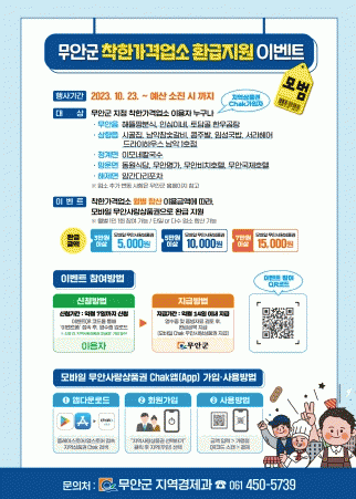 ÇÑÆí, ¡®ÂøÇѰ¡°Ý¾÷¼Ò¡¯´Â Àú·ÅÇÑ °¡°Ý°ú û°áÇÑ À§»ý »óÅÂ, Ä£ÀýÇÑ ¼ºñ½º¸¦ Á¦°øÇÏ´Â ¾÷¼Ò·Î, ÇöÀç ¹«¾È±ºÀº ÂøÇѰ¡°Ý¾÷¼Ò ÃÑ 15°³¼Ò¸¦ ÁöÁ¤ÇÏ¿© Áö¿øÇϰí ÀÖÀ¸¸ç, 10¿ù Áß ÇÏ¹Ý±â ½Å±Ô ¸ðÁýÀ» ÅëÇØ Áö¼ÓÀûÀ¸·Î È®´ëÇÒ °èȹÀÌ´Ù.