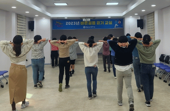 ¡®¹Ù¸¥°ÉÀ½ °È±â ±³½Ç¡¯¿¡¼´Â Àü¹® °È±â °»ç ÁöµµÇÏ¿¡ °ÉÀ½ ½Ã¹ü(¿öÅ· Å×½ºÆ®)°ú ³ÐÀû´Ù¸®°üÀý(°í°üÀý) ¹× ü·Â °È ¿îµ¿ µîÀ¸·Î Áö¿ªÁÖ¹ÎÀÇ ±âÃÊü·ÂÀ» ³ô¿´´Ù.